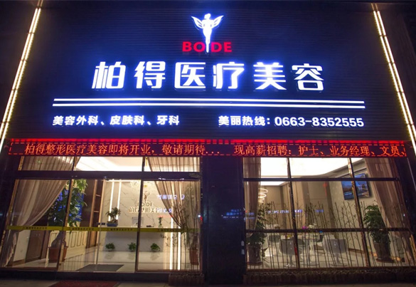 ??《柏得醫美》創始人詹柏得、創立于2008年,是從事專業醫學美容,集臨床、科研、教學為一體的整形美容中心。服務涵蓋整形美容、形體雕塑、注射整形、激光美容、口腔管理、等多種醫美領域。